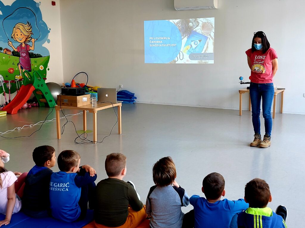 Dana 29. ožujka 2022. godine u Dječjem vrtiću Maslačak održano je predavanje za djecu Psi u svemiru i čarobna sunčeva svjetlost. Predavanje je održala gospođa Vernesa Smolčić, astrofizičarka i redovita profesorica na Fizičkom odsjeku Prirodoslovno-matematičkog fakulteta Sveučilišta u Zagrebu. Voditeljica je platforme Astroučionica na kojoj se nalazi mnoštvo informacija o svemiru koje su primjerene dječjem uzrastu, ali su jednako tako zanimljive i odraslima.